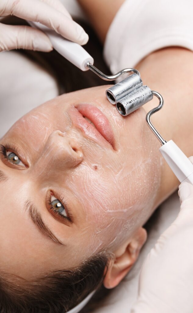 A specialized ionized gel, tailored to your skin type and condition, is applied, followed by a polarity reversal to tighten pores and firm the tissues. High-frequency current is used to minimize pore size, infuse oxygen into the skin, and promote healing and improved circulation, providing a warm and relaxing sensation.